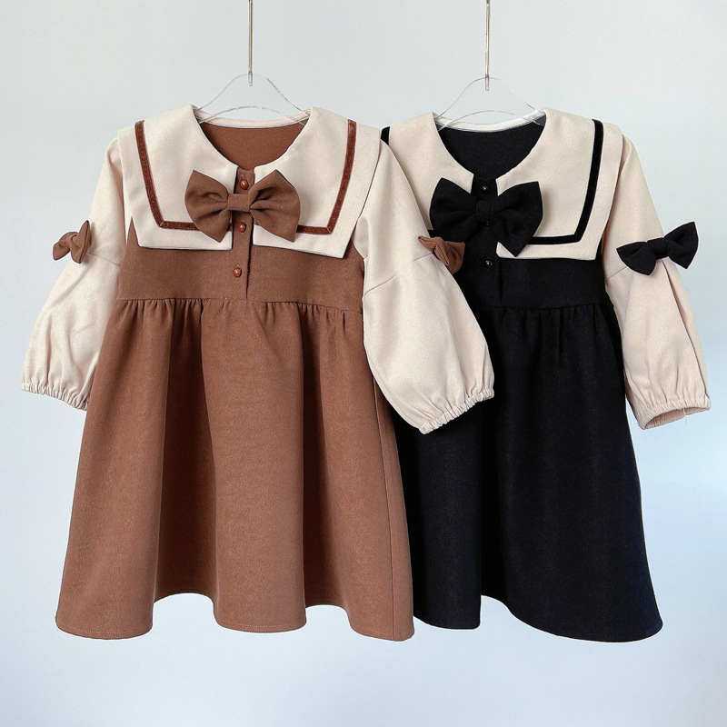 清楚で上品な学院風丸襟リボン付きワンピース!入学式や発表会におすすめのキッズセーラーファッション