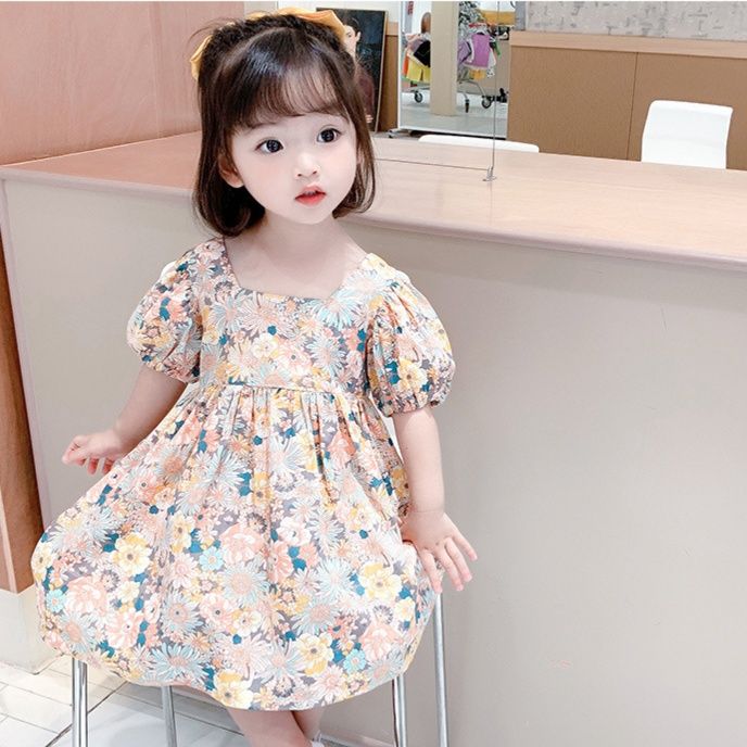 夏にぴったりな花柄パフスリーブで涼しく着られてお出かけにも快適なキッズワンピース