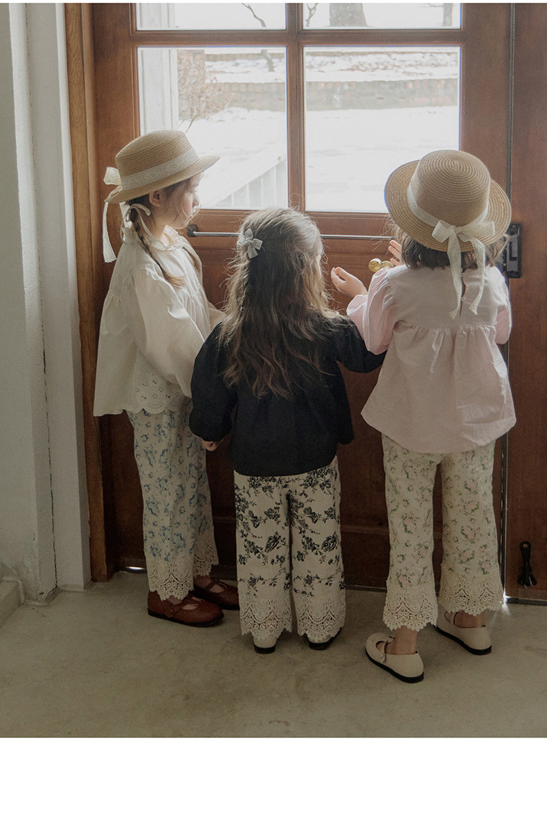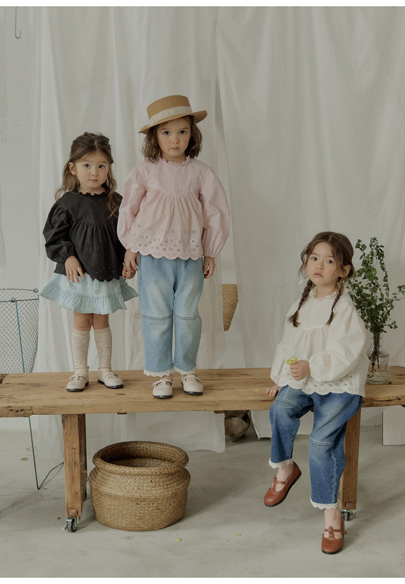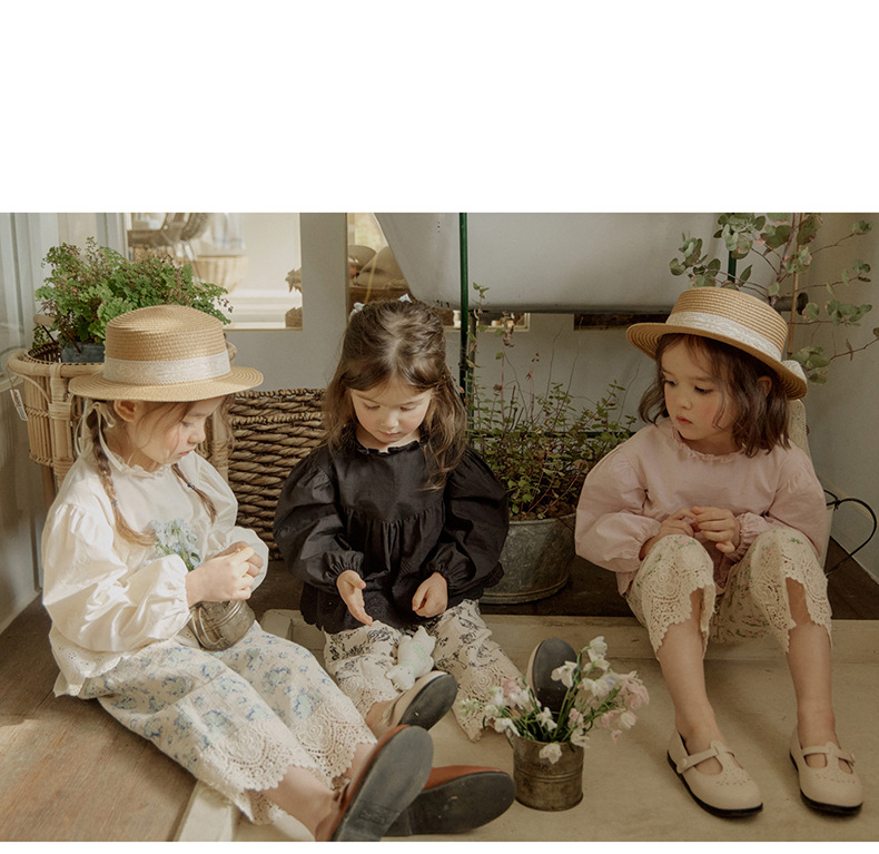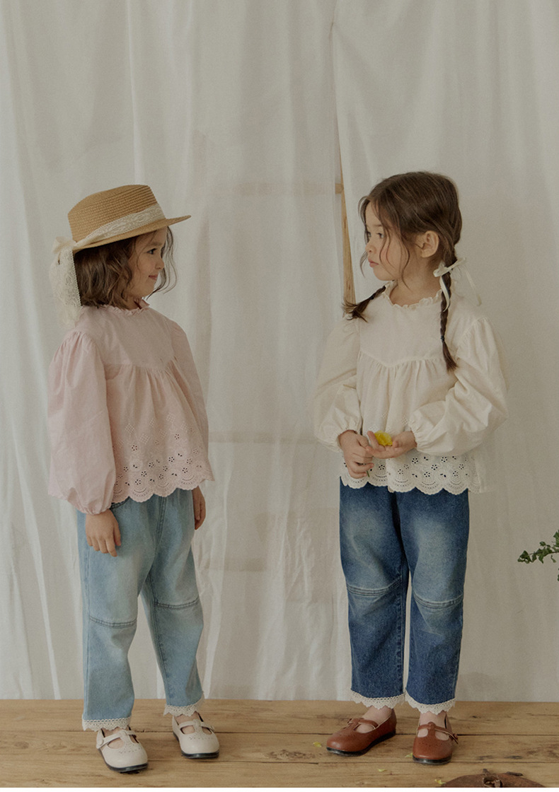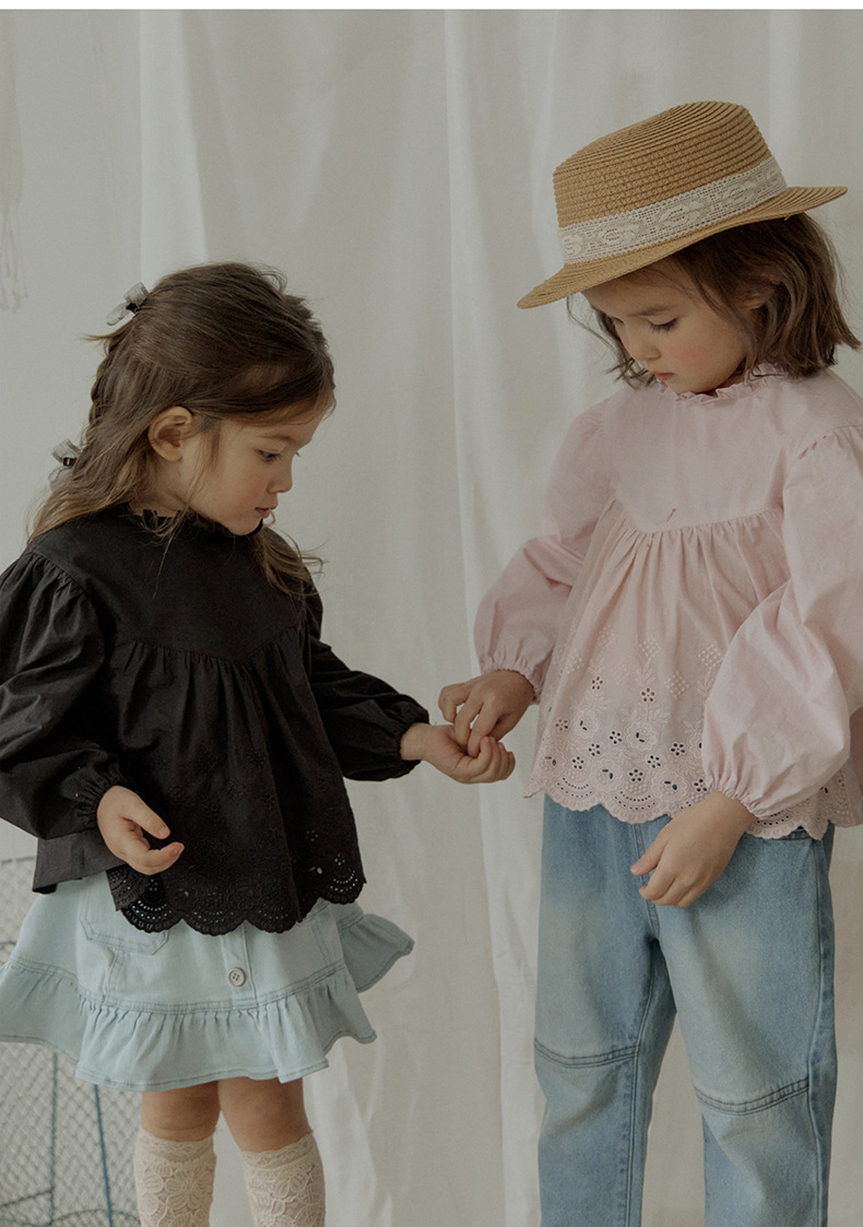 「キッズファッション 花レース刺繍の長袖ブラウス」は、