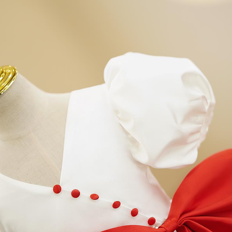 ウエスト部分に施された大きなリボンがアクセントとなり、華やかさを演出します。