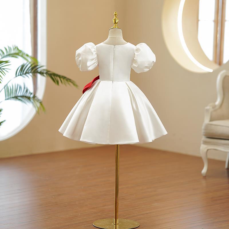 キッズファッションに映える、特別な日のためのドレスです。