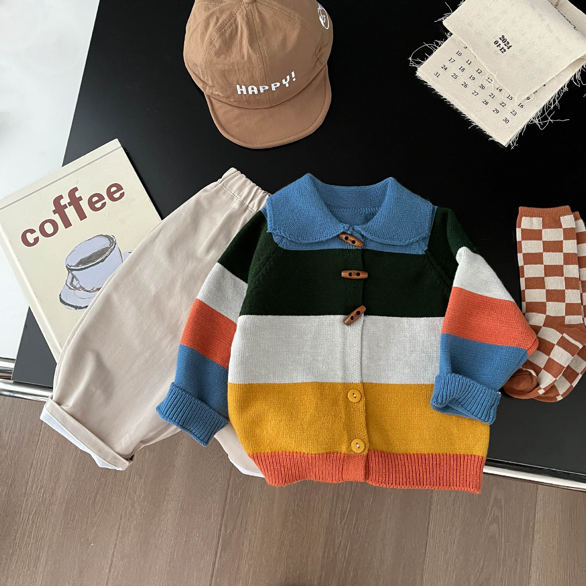 「キッズファッション ニット 虹色ボーダー丸襟ニットカーディガン」は、