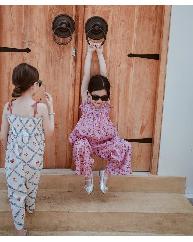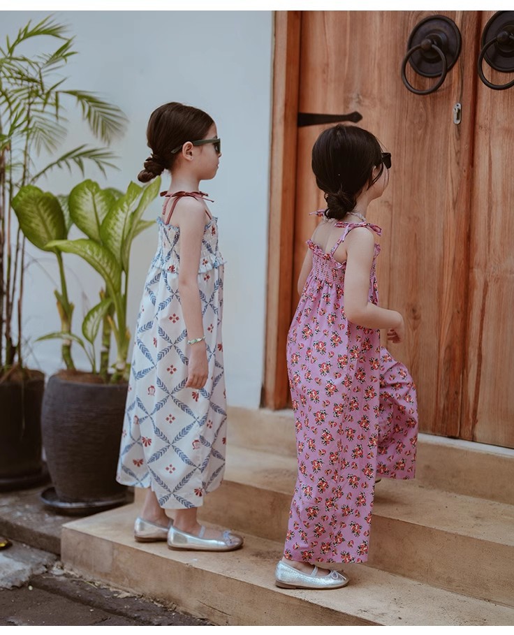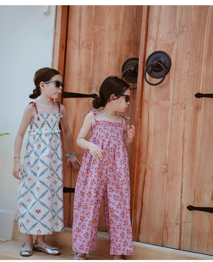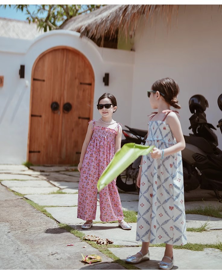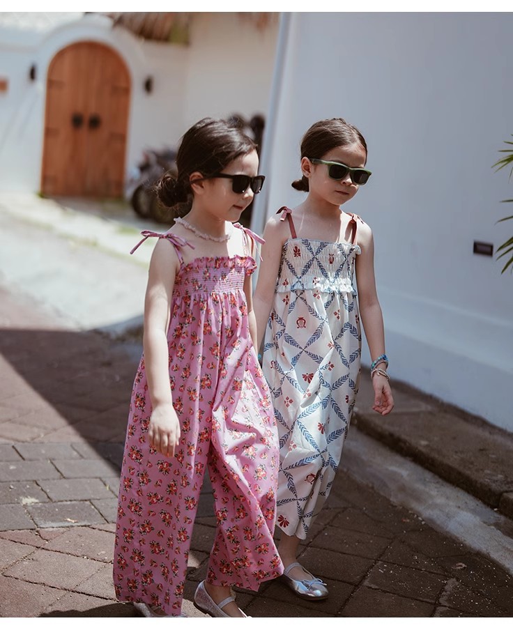 夏のお出かけコーデが一枚で完成する「花柄オールインワン風ワイドパンツ」。キャミソール風トップスとワイドパンツがつながったデザインで、コーデいらずでおしゃれに決まります。全体に散りばめられた涼しげな花柄と、ゆったりシルエットで動きやすさも◎。柔らかな素材で肌当たりもやさしく、汗ばむ季節も快適。リゾートや旅行、週末のお出かけから普段着まで、幅広いシーンで大活躍のキッズアイテムです。ホワイト・ピンクの2色展開、90〜140cm相当のサイズをご用意しました。