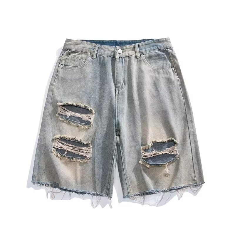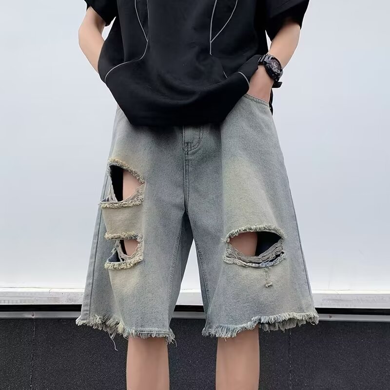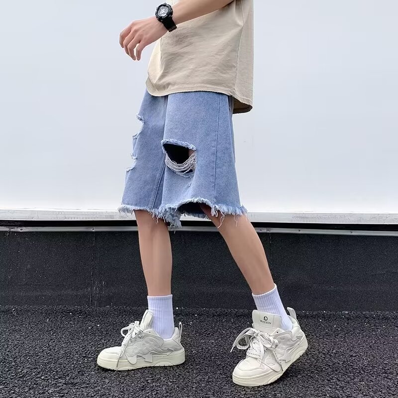 トレンド感たっぷりのダメージ加工が目を引く、キッズ用デニムハーフパンツです。膝の大胆なダメージと裾の切りっぱなしデザインで、1枚はくだけでこなれたストリート風コーデに。ゆったりシルエットで動きやすく、デイリーからお出かけまで大活躍。インディゴブルーとライトブルーの2色展開で、どんなトップスとも合わせやすく、着回し力も◎。プチプラでおしゃれ好きキッズにぴったりの1枚です。