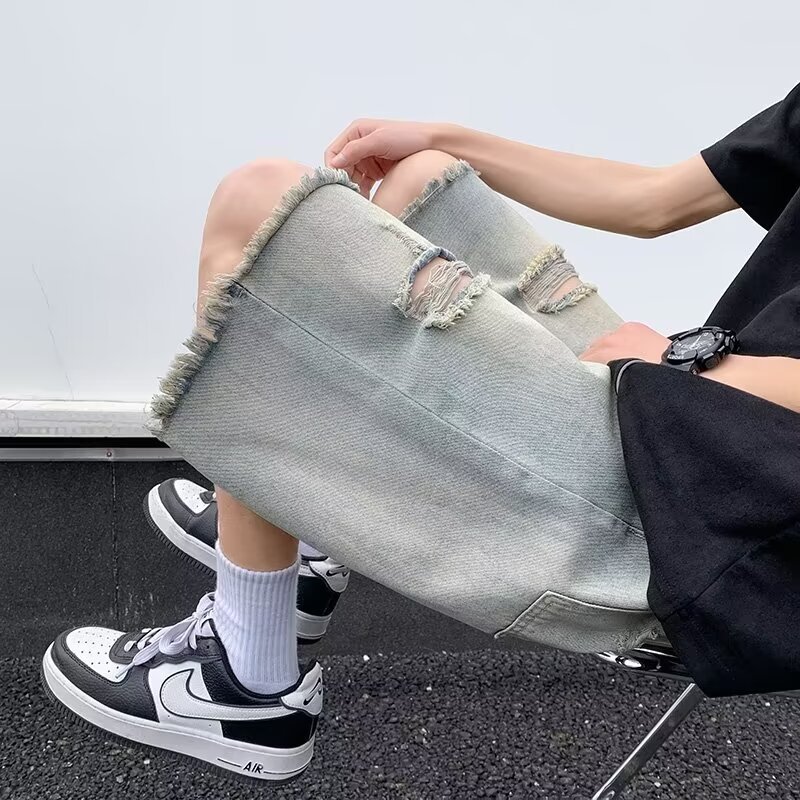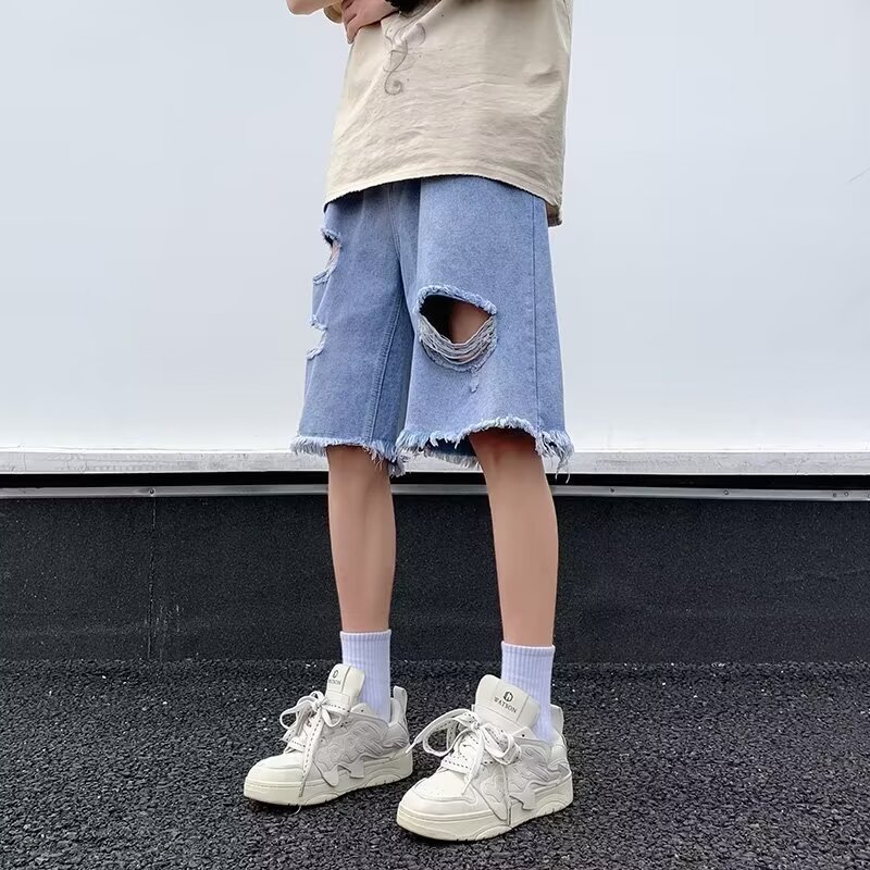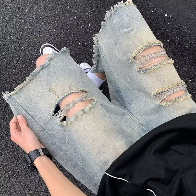 写真映えするダメージデザインで、公園ショットやお出かけスナップにもぴったり。