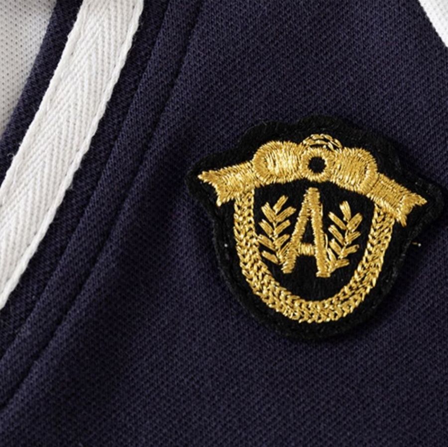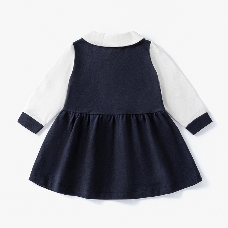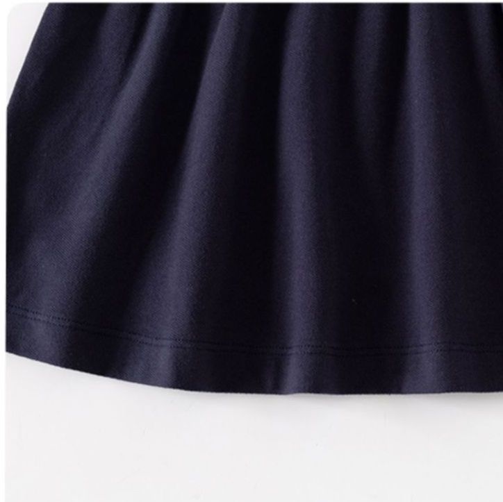 入学式や発表会など、ちょっとよそゆきの日にぴったりの学院風長袖ワンピース。丸襟と胸元のリボン、エンブレムワッペンがきちんと感と可愛らしさを両立させてくれます。ジャンパースカート風の切り替えデザインで、一枚でコーデが完成。落ち着いたダークネイビーだから、フォーマルシーンはもちろん、家族でのお出かけや習い事にも活躍します。長袖なので季節の変わり目にも使いやすく、兄弟姉妹おそろいコーデにもおすすめの一着です。