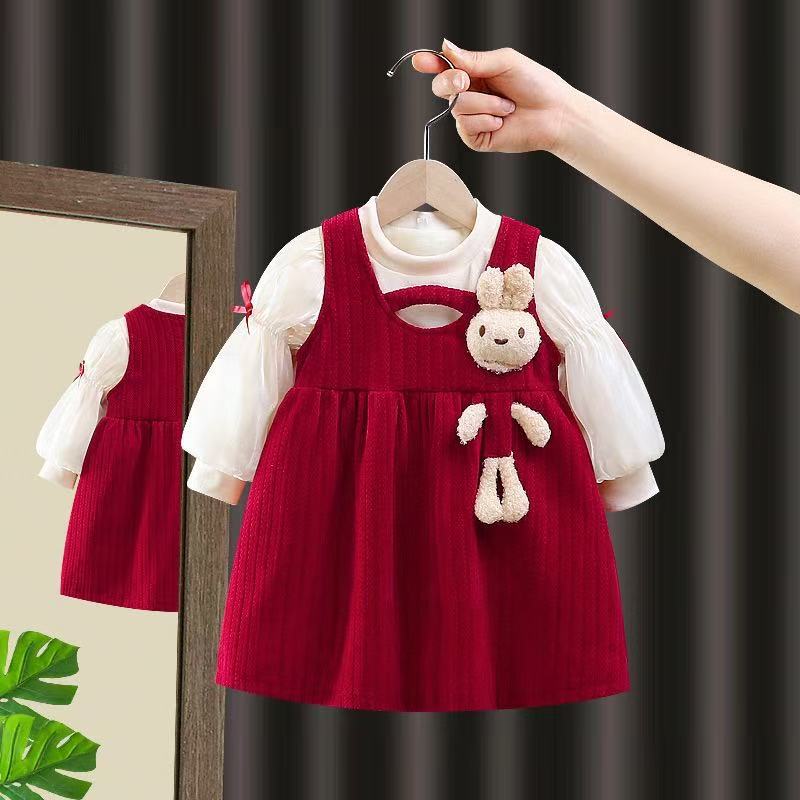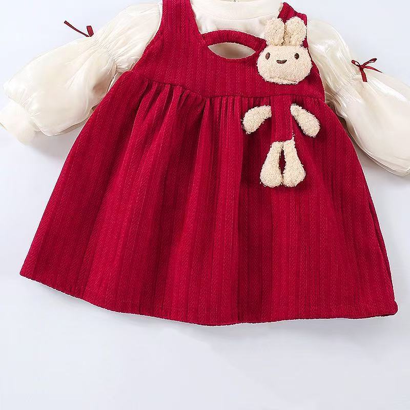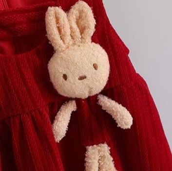 お子さまの“今しかないかわいさ”を、うさぎアップリケと赤のジャンパースカートでやさしく引き立ててくれる一着です。秋冬のおしゃれの主役アイテムとして、ぜひワードローブに加えてみてください。