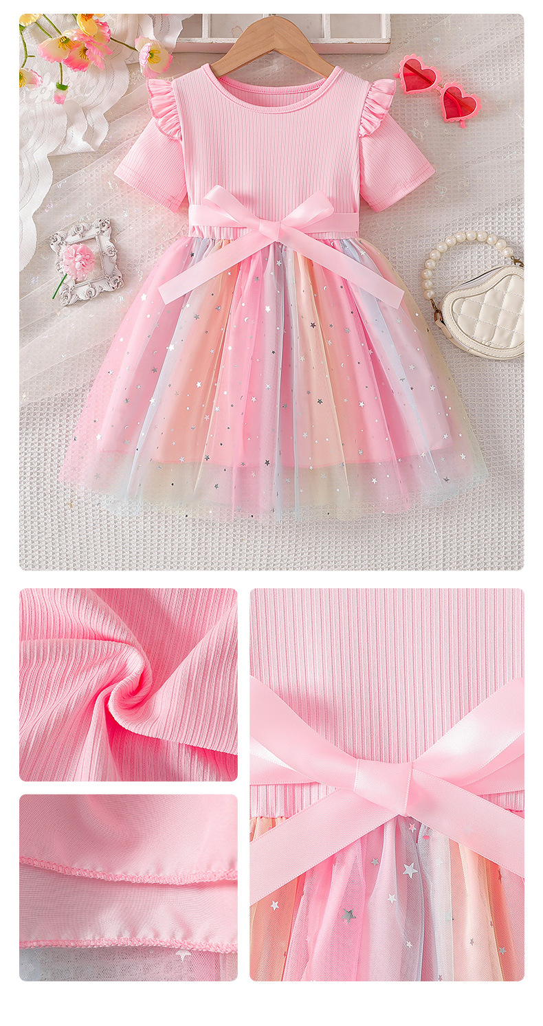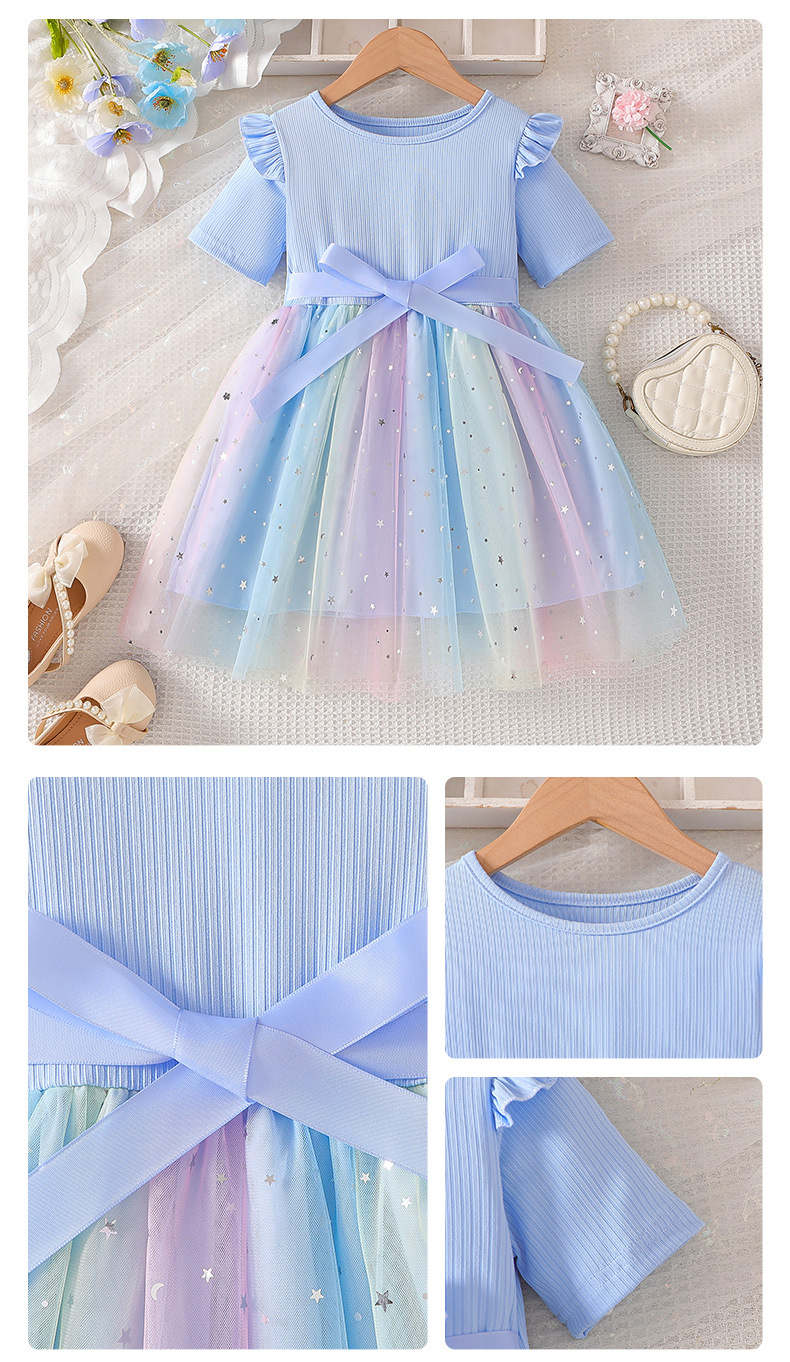 特別なお出かけの日にぴったりの「星空刺繍チュールスカート付きリボンドレス」。