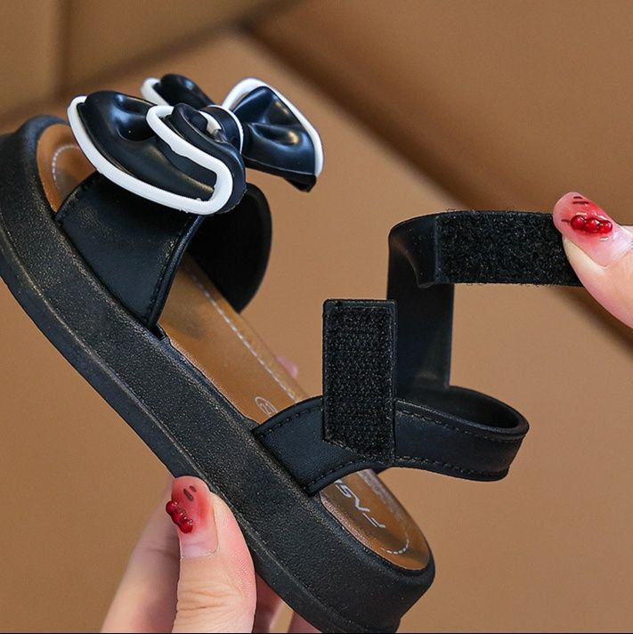 甲部分に大きなリボンモチーフをあしらった可愛らしいデザインのキッズファッション向けサンダルです。