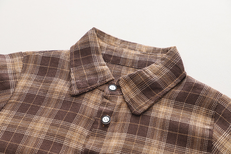チェック柄の襟と袖部分にニットベストを重ねたような仕立てで、一枚でおしゃれなコーディネートが完成します。
