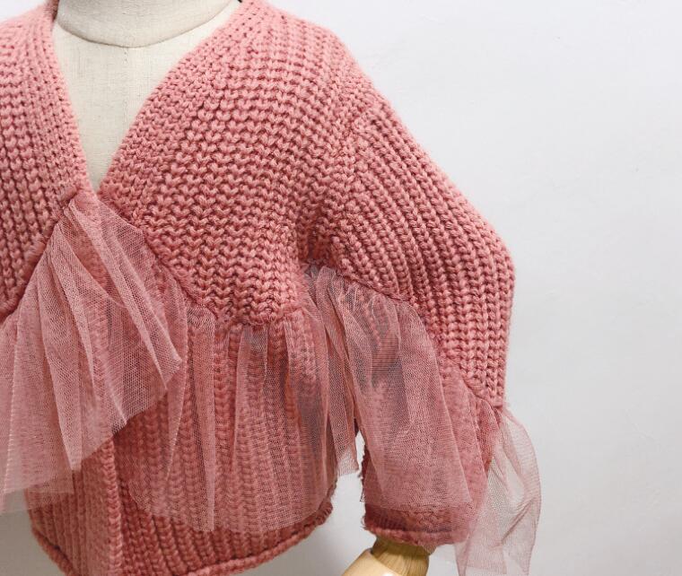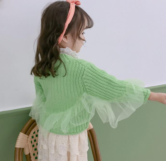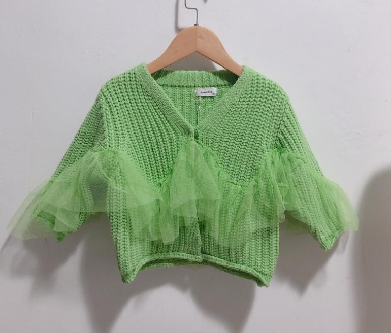 キッズファッションの定番アイテム! 秋冬シーズンにぴったりの可愛い女の子用ニットカーディガンです。 袖のチュール装飾が上品で、防寒性も抜群。 サイズは80-130センチまで対応しており、お子様の成長に合わせてお選びいただけます。